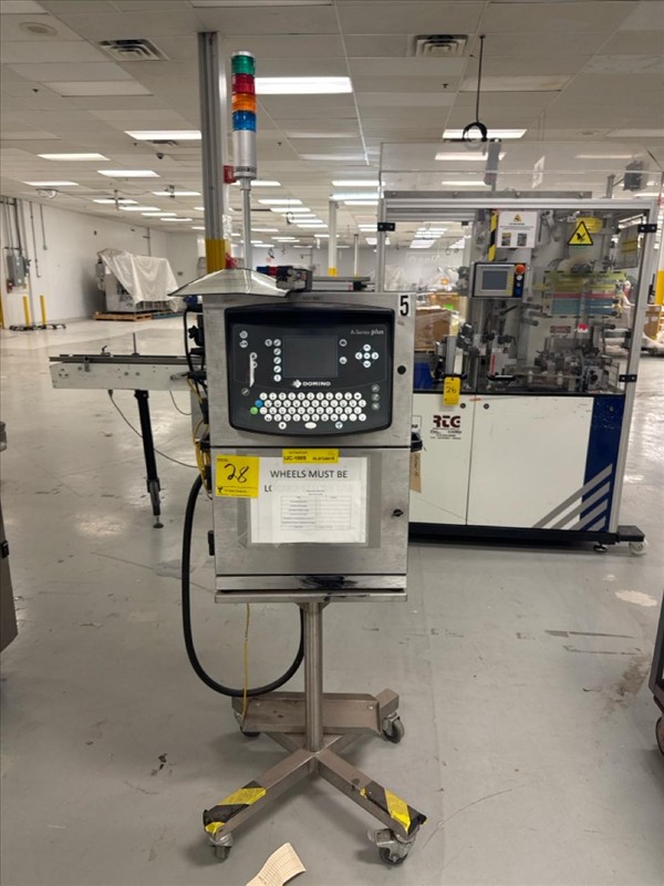 Farson Compact Carton Laser Coder, mod. LG01, ser.no. J302, w/ (2) Domino Lasers, mod. D30i, conveyor 4 in. W x 107 in. L, Dorner conveyor approximately 4 in. W x 53.5 in. L