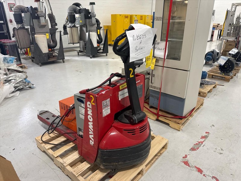 Raymond Electric Pallet Truck, mod. 102T-F45L, ser.no. 102-13-26474, 4500 lbs. cap., 24V c/w Ferro Five battery charger, mod. SFR12A510 CSA, ser.no. E PIC942982, (Needs new battery)
