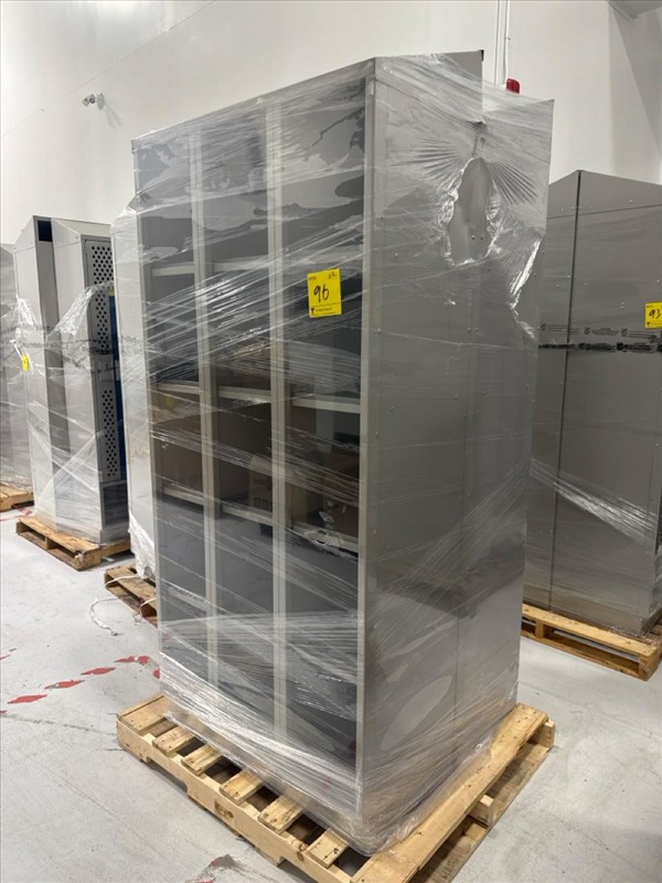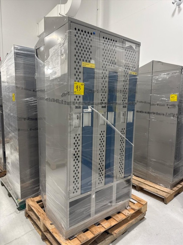 (Qty 2) of (1) 3-Sectional Full Door Lockers approximately 3 ft W x 18 in. D x 82 in. H (1) One Full Door Locker approximately 1 ft. W x 18 in. D x 82 in. H, on (1) Skid